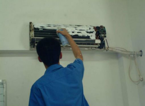 | 开封市空调维修师傅给开封市用户上门维修清洗空调。 |